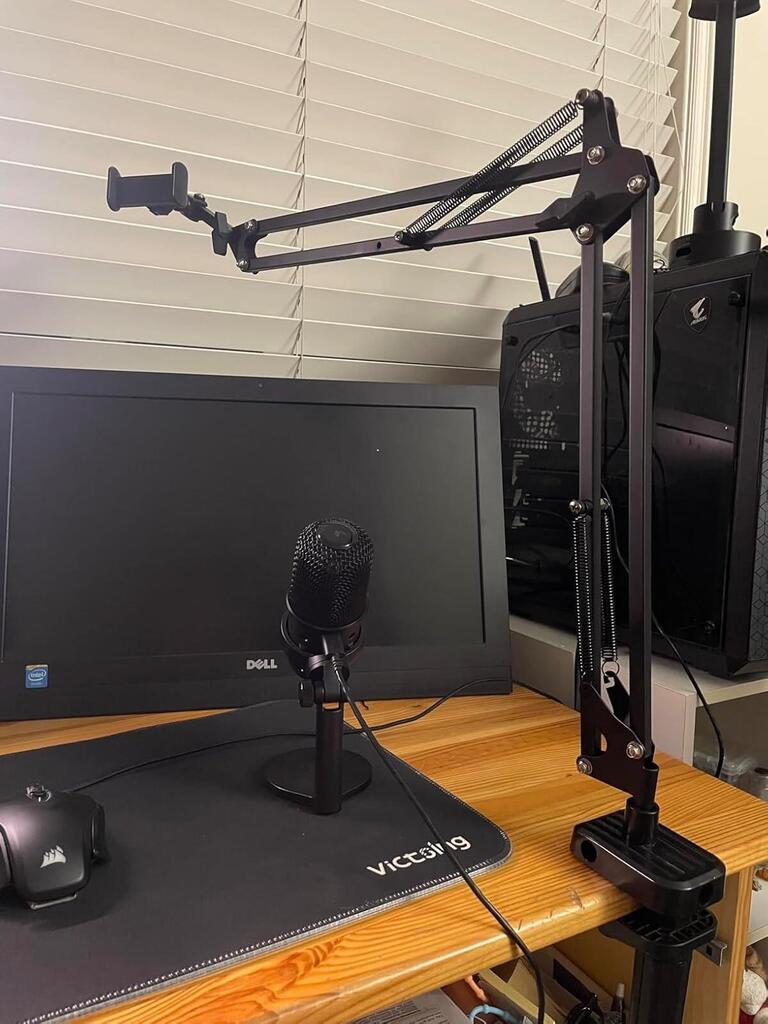 - WIDE COMPATIBILITY & HANDS FREE: Upgraded adjustable anti-slip clip base can be used on desks bed bedside table, dining tables, kitchen worktops or any surface (max. thickness 1.85 inches). Perfect for use anywhere, such as office, bedroom, kitchen sofas bedside table, gym, etc. Free your hands for video calls, meetings, movies, live streaming, learning, cooking, playing or reading
