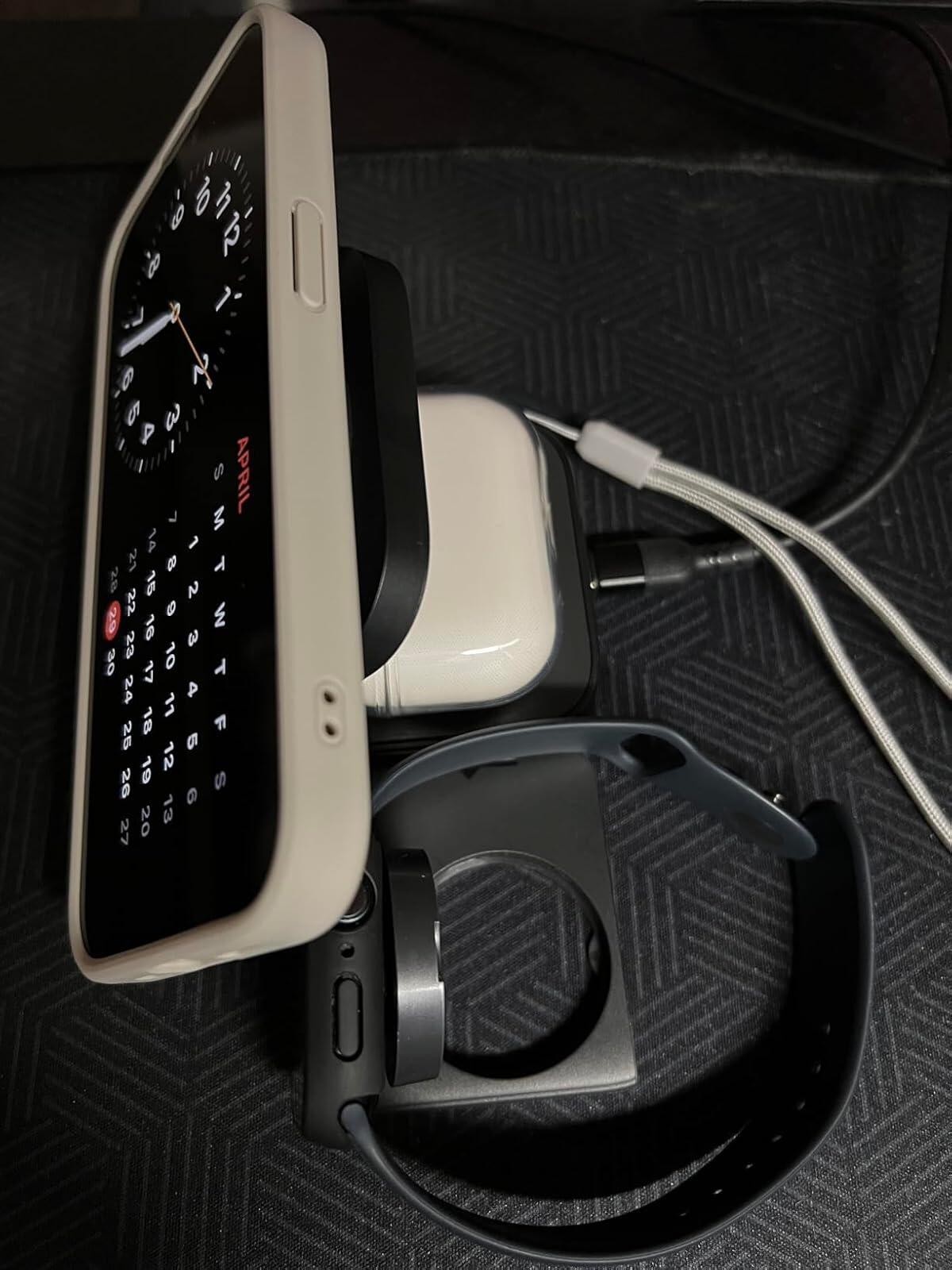 - Appleファミリー専用の3-in-1:iPhone、Apple Watch、AirPodsをワンストップでワイヤレス充電できるソリューション。ご自宅、オフィス、旅行先、ホテル、会議室など、あらゆる場所をすっきりと整理整頓できます。コードやケーブルの絡まりを防ぎ、空間をすっきりと整頓できるので、忙しいライフスタイルに便利な充電ソリューションです。